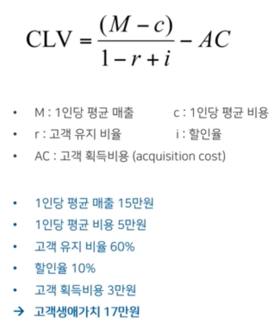 한명의 고객이 진입부터 이탈까지의 전체 활동기간 동안 누적해서 발생시키는 기대수익