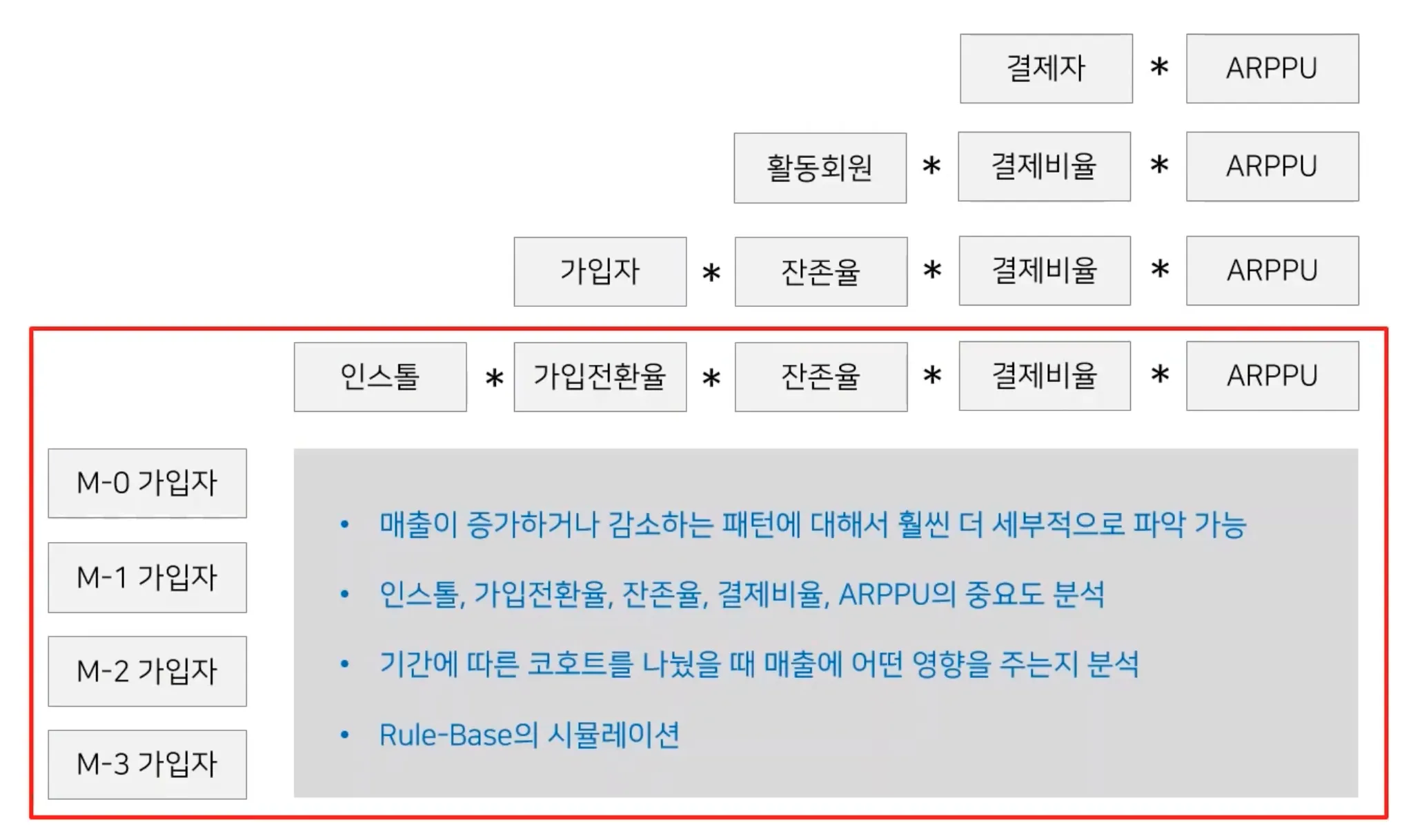 인스톨 * 가입전환율 * 잔존율 * 결제비율 * ARPPU