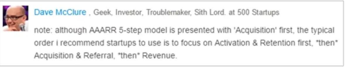 Activation & Retention을 먼저 준비하고 그 다음 Acquisition & Referral을 준비 후 Revenue를 준비
